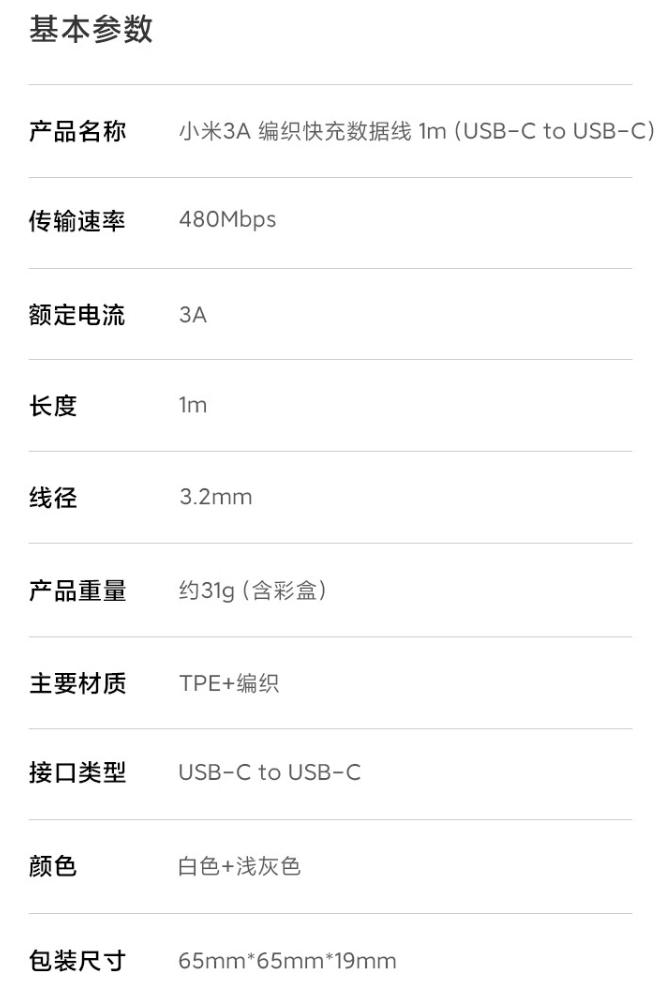 IT 之家 4 月 5 日消息,近日,小米推出一款 3A 编织快充数据线,采用 USB-C to USB-C 接口,京东平台售价 29 元。