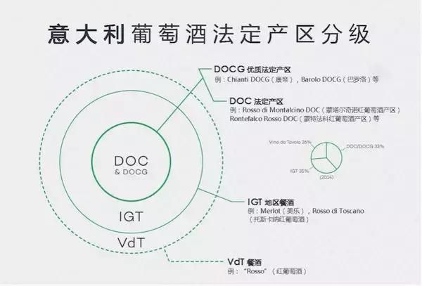 值得一提的是,DOC与DOCG的法规侧重保护和推广意大利本土葡萄品种,对葡萄品种的规定通常十分严格,而许多意大利葡萄酒生产者为了坚持自己独特的风格,宁愿放弃DOC命名,选择更低等级的IGT。这也就造成了时下许多IGT葡萄酒的品质甚至高于一些DOC的情况。以下是一些常见的标识: