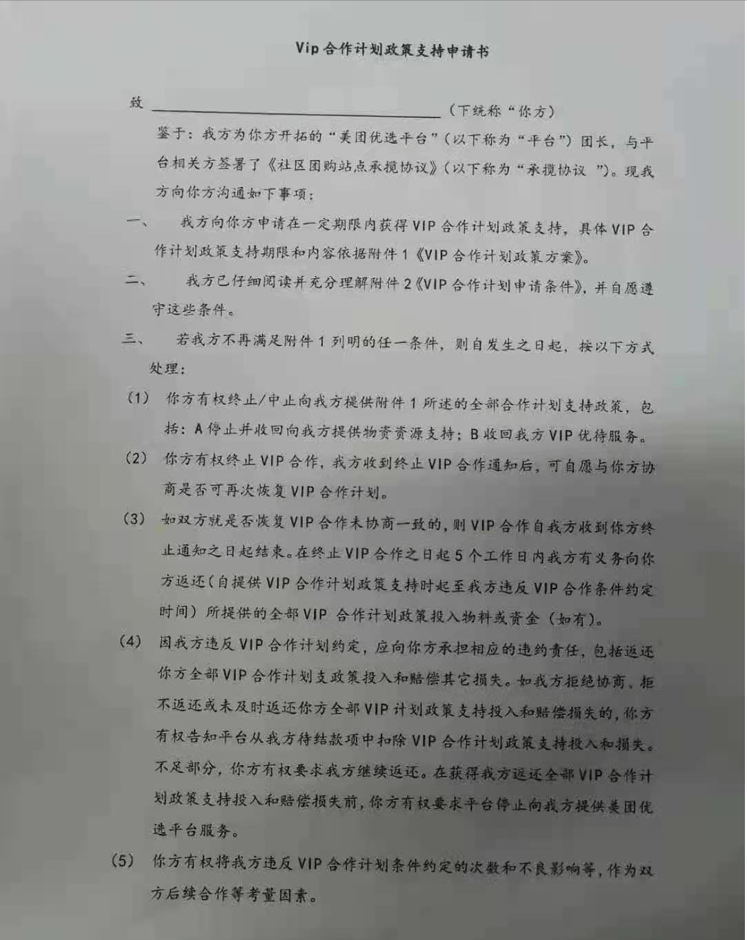 拿到一份美团优选的VIP合作计划政策协议,条约自己看吧,看来这也是准备收割了。美团一开始,不用想,互联网的尿性,其余家也要跟上了。