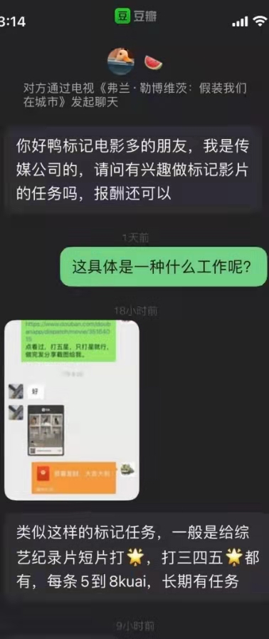为豆瓣上的影片打星,每条居然5-8块,现在这网络黑产看来确实赚钱啊。