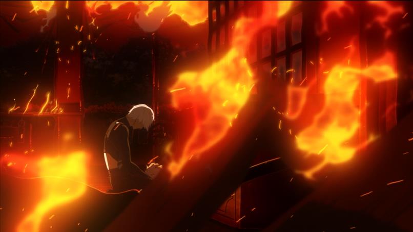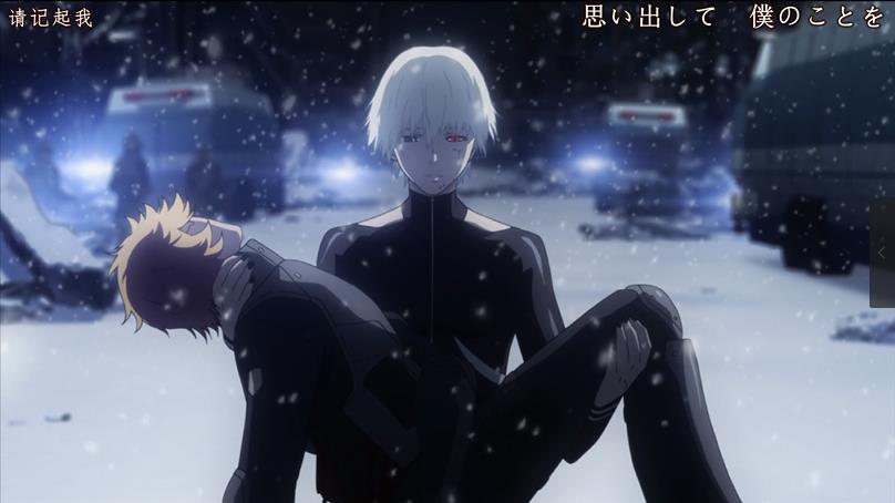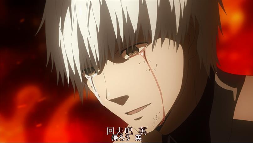接着,火势越来越大,追过来的董香看见金木研抱着裹着白布的永近英良离开咖啡店。此时的英已经死了吗?还是说,裹着布的目的是为了防止被越来越大火给烤伤?然而金木研所去的地方却是CCG的驻扎点。如果只是恰巧抱着永近英良在"回去"的途中经过的话,那他完全没必要往CCG那里走。他的目的很明确,他抱着最后一丝希望走向CCG、走向末路。