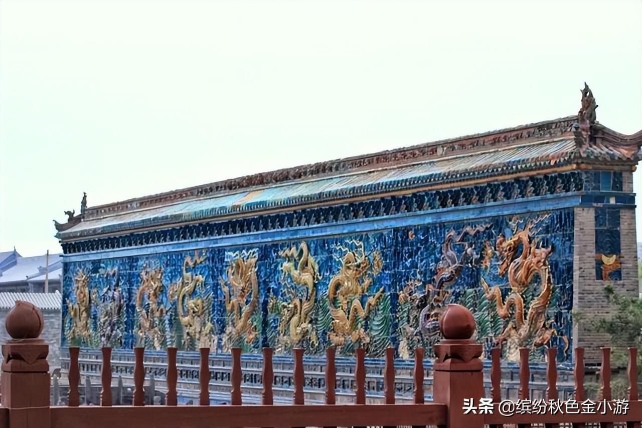 大同九龙壁,位于大同市平城区大东街18号。明太祖朱元璋第十三子朱桂代王府前的琉璃照壁,距今已有600多年历史,壁高8米,厚2.02米,长45.5米,壁上均匀分布着9条生动的飞龙,两侧为日月图案,很震撼,气势磅礴。虽历经百年,但九龙壁的颜色依然明艳,保存完好。
