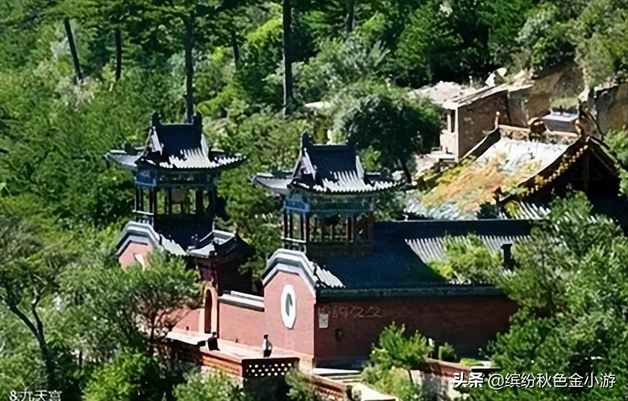 道教圣地,四合院式庙院。又称碧霞宫,位于恒宗峰西北侧的高阜处,北屹凌云阁、斗姆阁、南塔山神庙、苍神宫、东有纯阳宫、太乙庙,形成了一组以九天宫为中心的祠庙建筑群,是横山上的道观之一。坐索道上恒山,下站后走不远就到了。