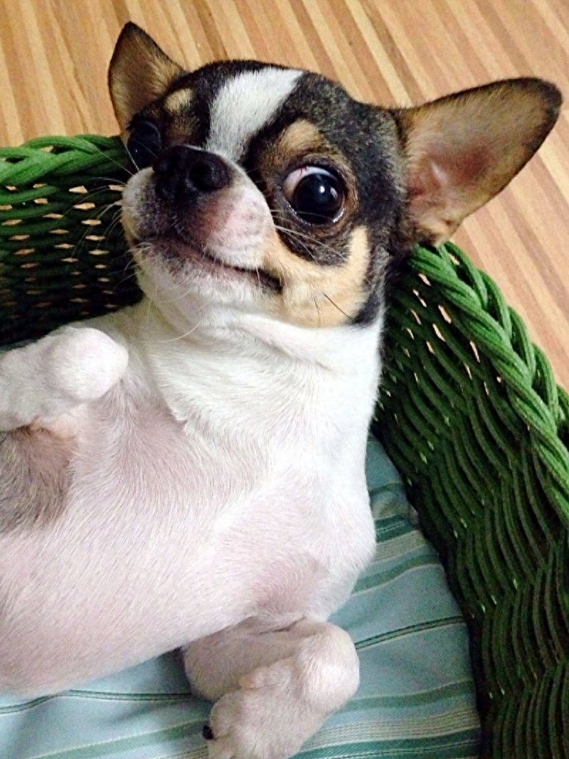 有人说吉娃娃眼睛大但是头骨颅腔小,导致压迫到大脑,所以吉娃娃很敏感,甚至你在温柔抚摸它的头时,它都会幻想你想要加害它。