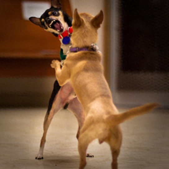 吉娃娃是那种喜欢到处挑衅的狗,不管是遇到体型大的狗还是人,它们都想要去挑衅一番,表现出非常凶猛,但是这都是在主人在的情况下的,但是如果主人不在,它们就会很怂了。