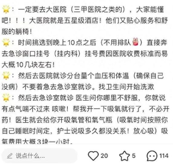 博主称“旅游订不到房可挂急诊号在医院过夜”