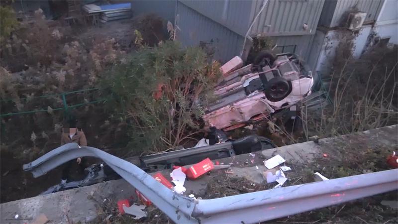 据事故车辆乘员介绍,当时他们在高速上正常行驶,突然被后车追尾,后车失控导致两车翻出了高速。