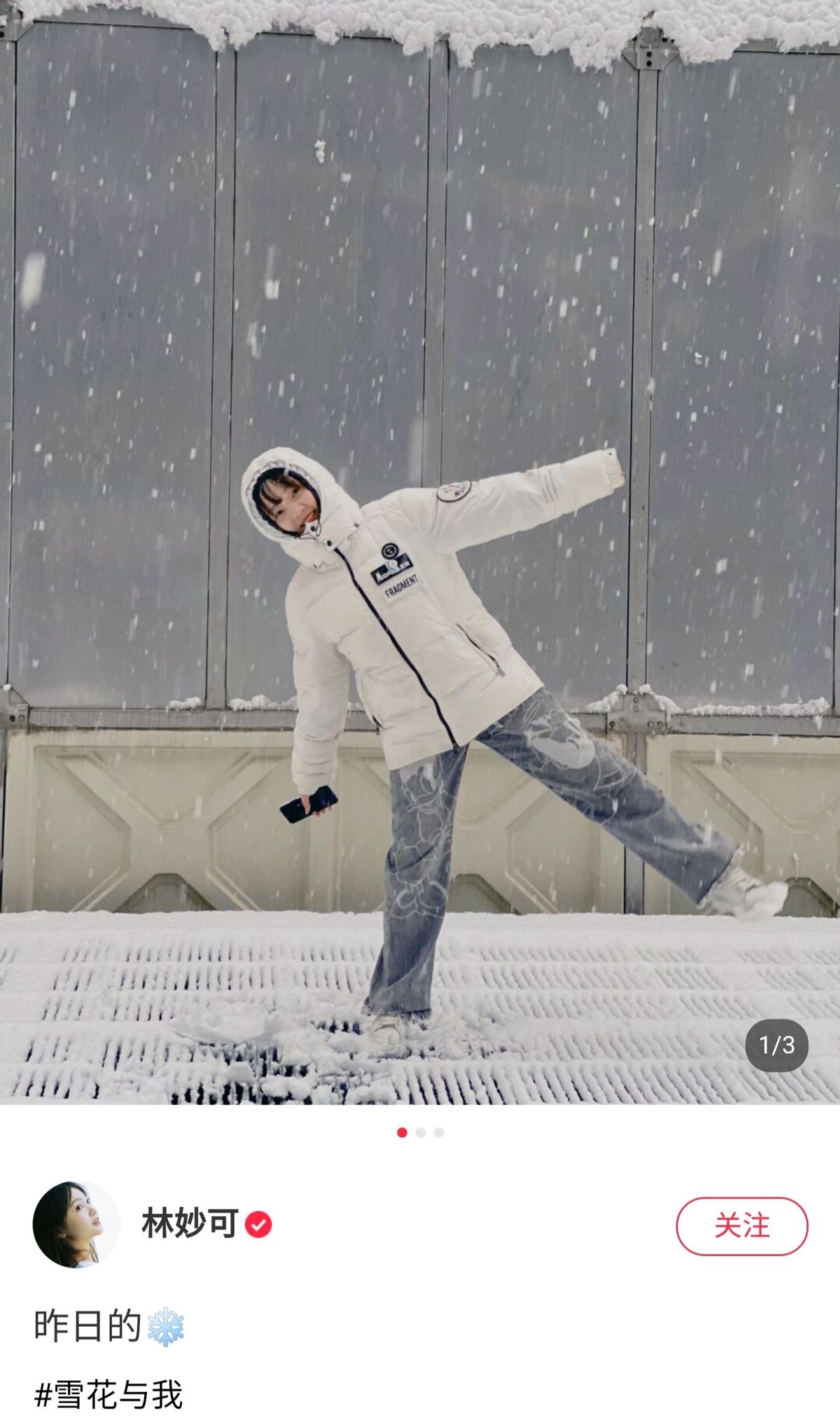 林妙可身穿一件白色的羽绒服,在漫天的大雪中拍摄了照片,显得非常清纯可爱。她的身形消瘦了不少,虽然已经22岁了,但是颜值回春如同初中生一般。圆润的小脸看上去气质甜美,不过大腿依然粗壮抢镜,可能是为了保暖穿了很多衣服