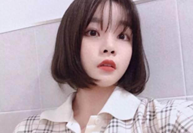 我们再来讨论一下脸型,像这种肉肉型的脸蛋,脸会显得有点胖,这种脸的短发发型应该是齐肩短发,还有发尾要内卷,这样可以稍微的遮住一下脸,在弄一个空气刘海,整个形象看上去就肉肉的好想捏。