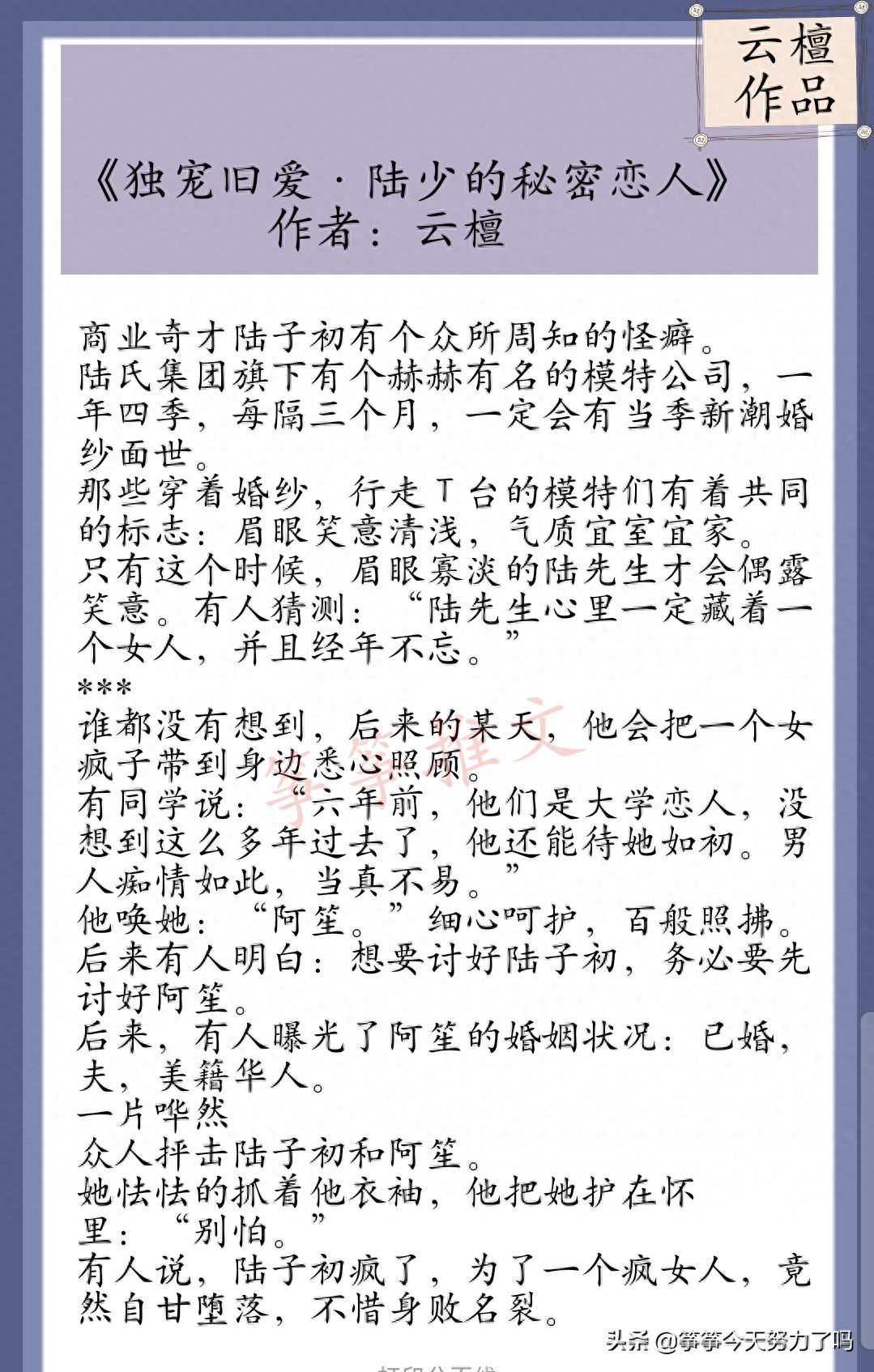 云檀作品集,《陆少的秘密恋人 》《如果不遇江少陵》你看过哪本