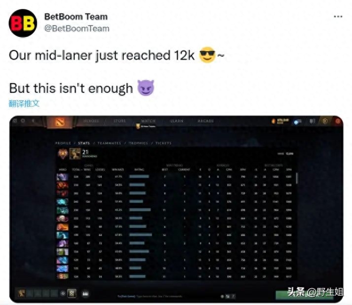 2、东欧BB战队在推特发文,宣布了队伍著名二号选手gpk的天梯分数达到了12000分,暂时排名欧服第六。欧服作为目前最强赛区,一万两千分的含金量还是非常强大的。