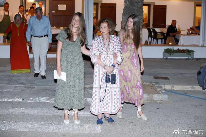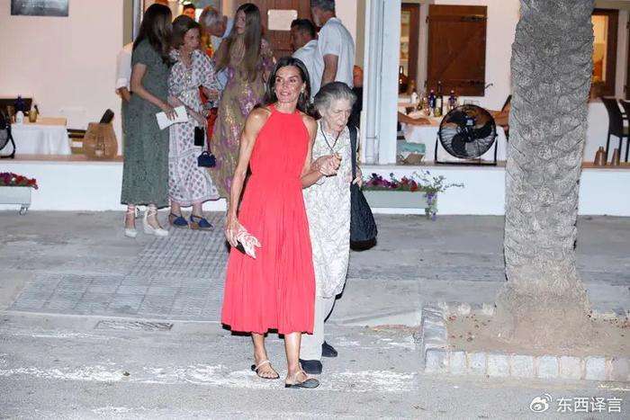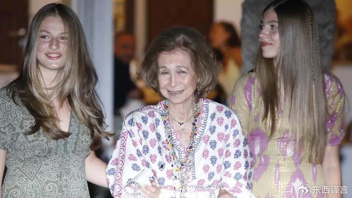 (莱蒂齐亚拉着的是索菲亚王太后的亲妹妹,现年81岁的艾琳公主,在希腊王室被废黜后,她搬到了西班牙,依靠着姐姐姐夫生活,已经加入了西班牙国籍。)