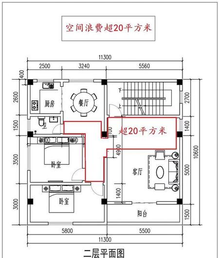 户型独立过道长约10米,再加客厅北区浪费空间,整体浪费空间超20平米,空间浪费非常明显。