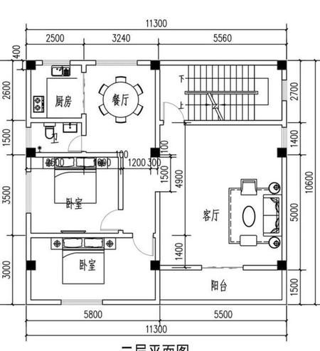 户型整体虽然由于楼梯间的占位,形成东北缺角,但室内各功能空间方正实用,很好设计和布局家具。