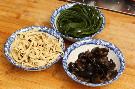 食材:面粉,千张,海带,木耳,十三香,盐,胡椒粉