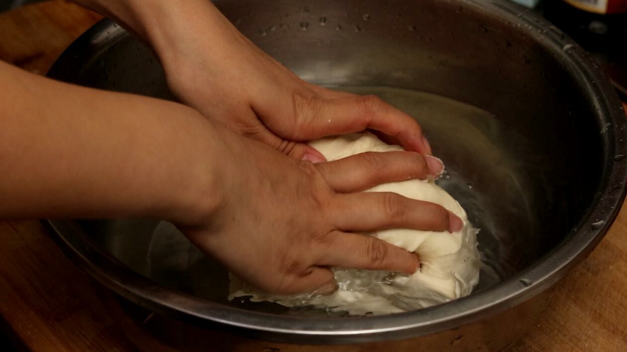 1)做面筋时,就将面粉揉搓成光滑的面团,再醒面半小时,放入清水中清洗,这样多清洗几遍,将面筋洗出来即可,