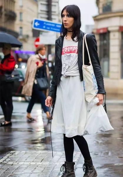 所以任何能够体现个性潇洒帅气的单品,基本都可以跟马丁靴搭配在一起,任何体现优雅温柔的都不能进行搭配。