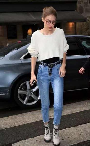 牛仔裤作为潇洒休闲的代表,与马丁靴搭配在一起,再合适不过了。