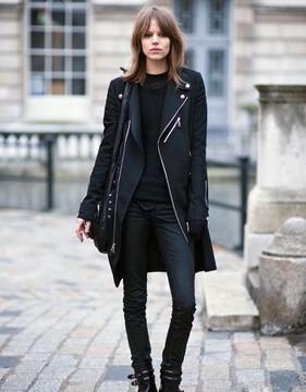 大家常入的马丁靴材质一般是选择皮质的,这时候在穿搭上再选择皮衣或者皮裤或者皮外套,会将马丁靴自带的英气感和酷感更加凸显。这里敲黑板:颜色的选择上:以黑白灰为主,这样的穿搭一定不要太花哨。选择皮裤单品的时候,可以让马丁靴和皮裤无缝衔接,视觉上有拉长腿部的作用哦。