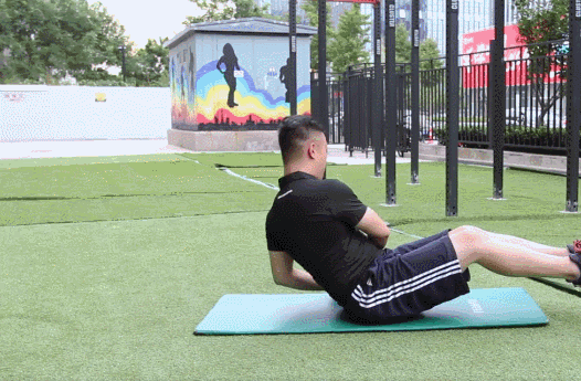 做完以上这些起始动作之后,你就可以参考图例示范的样子来完成这个训练动作了。在你做这个动作的时候,依然记住用你的腹部肌肉去发力,尽量把动作做到匀速,让你的腹部感受持续的紧张。